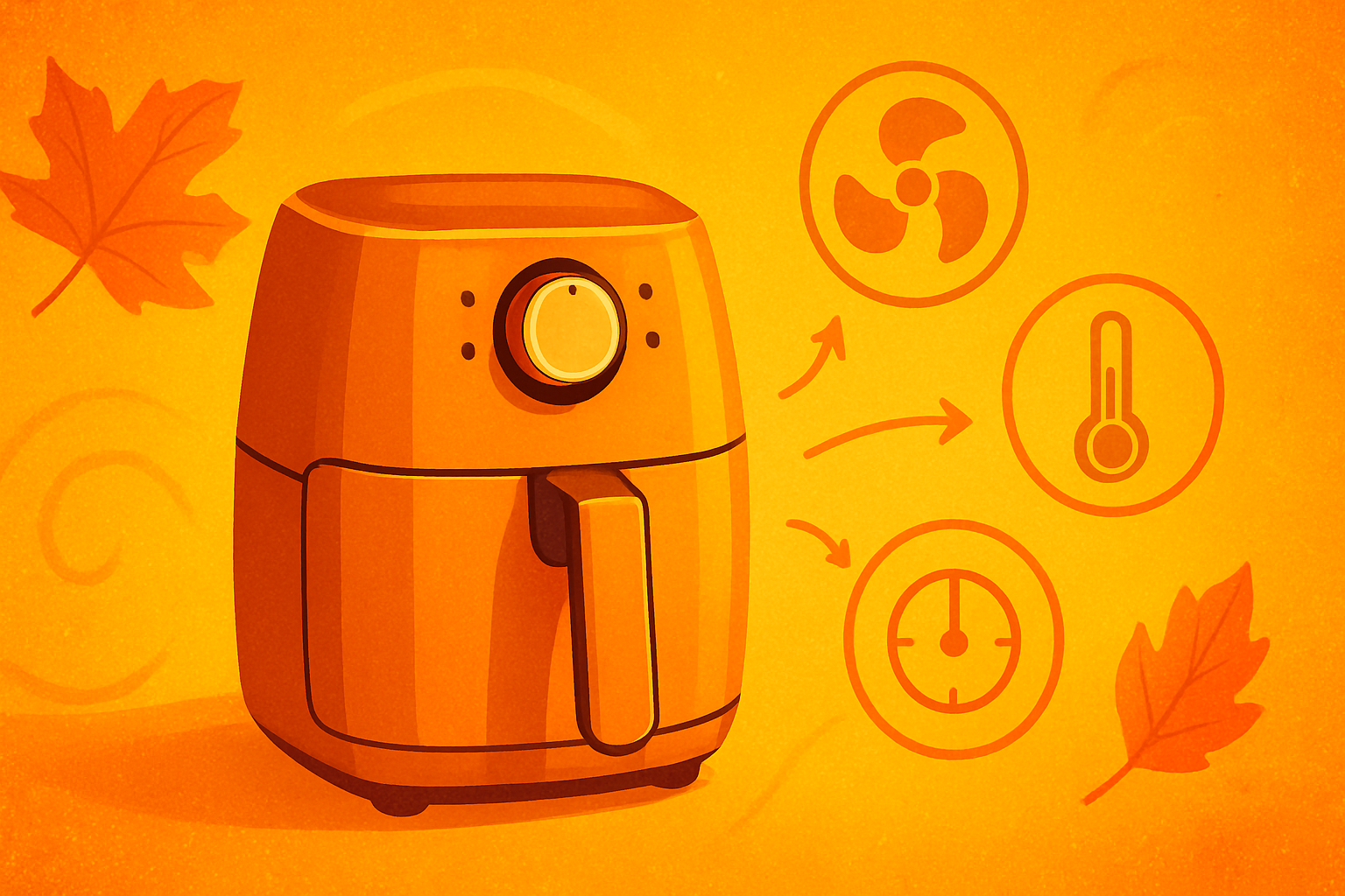 Принцип работы аэрогриля основан на циркуляции горячего воздуха вокруг продуктов. Благодаря равномерному нагреву, еда покрывается аппетитной корочкой, оставаясь при этом мягкой и сочной внутри. По сути, это мини-духовка с вентилятором, которая готовит быстро, равномерно и без масла.